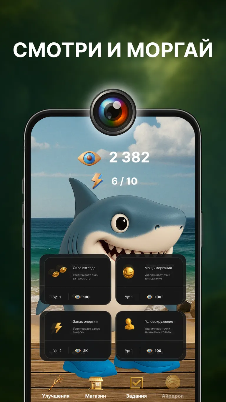 👁 Управление глазами: смотри в экран — получай очки